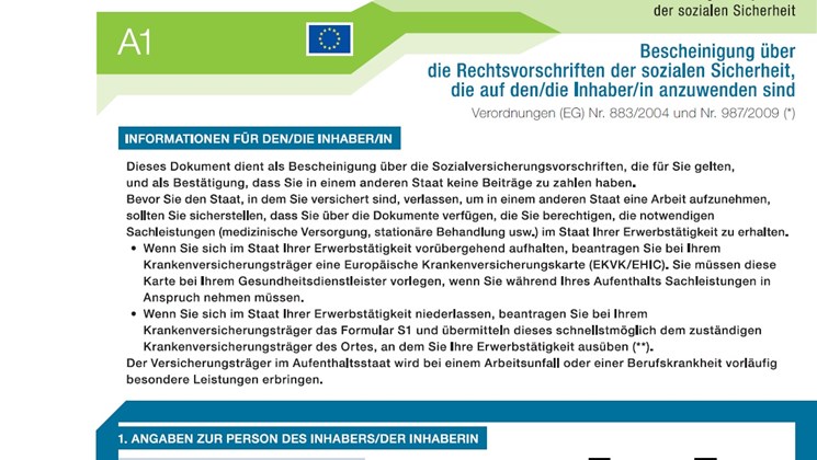 - Für Entsendungen von mehr als zwei Jahren muss der Antrag "A1 Ausnahmebescheinigung" benutzt werden.